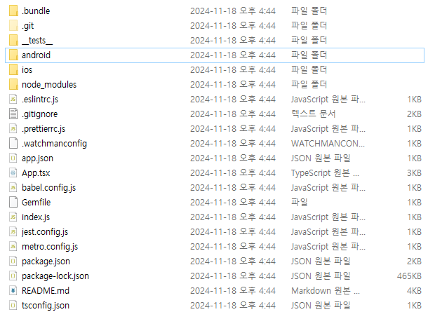리액트 네이티브 프로젝트에 android 폴더가 생성되지않아 한참 헤맸다..